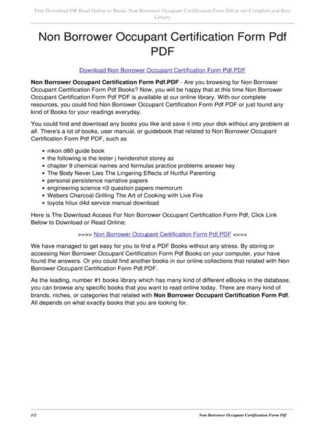Download online Non Borrower Occupant Certification Form Pdf Doc Google eBookstore